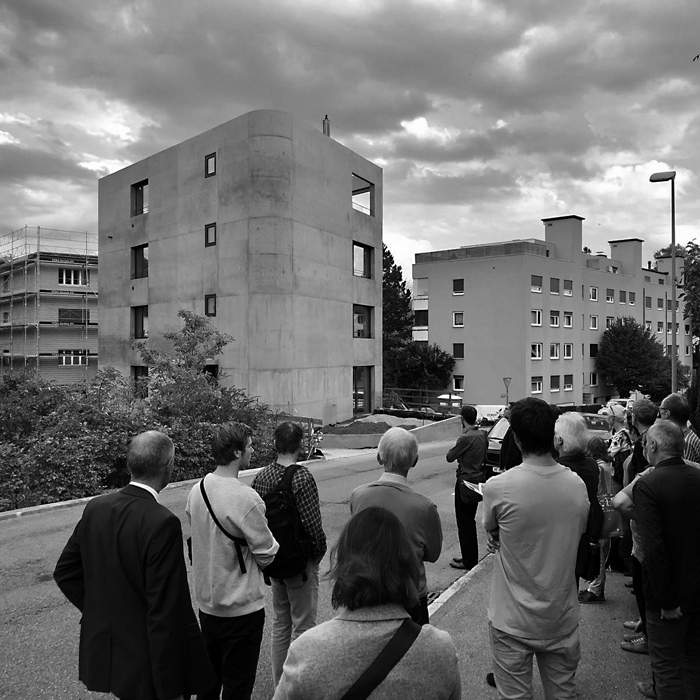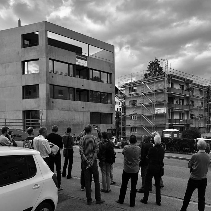 Die Besichtigung vor Ort thematisiert auch eine mögliche Strategie, wie auf eine zukünftige Verdichtung und Ausnutzungserhöhung reagiert werden kann.