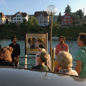 Diesmal werden die Kunstkästen von den international bekannten St. Galler Konzeptkünstlern Frank und Patrik Riklin bespielt. Sie sind in Schaffhausen bereits zum zweiten Mal zu Gast. Bereits 2008 haben sie mit einer Strassensperre am Rheinufer, die kurzfristig als Korridor für Passanten diente, für Aufregung gesorgt. Die Künstler, bekannt für ihre unkonventionellen Ideen, planen auch diesmal eine Überraschungsaktion. «Aktion 14. 9. – Überfall auf die Wirklichkeit» heisst die Performance, die in der Stadt Schaffhausen stattfinden wird. Was an diesem Tag zu erwarten ist bleibt vorerst ein Geheimnis. Nur so viel: Wer die Aktion verpasst, hat am 17. September an der Museumsnacht Gelegenheit, die Videoaufzeichnungen der Aktion zu sehen. Frank und Patrik Riklin, die 1999 das klein-künstlerische Unternehmen «Atelier für Sonderaufgaben» gründeten, sind vor allem bekannt durch ihr «Null Stern Hotel-Konzept», das weltweit für Furore sorgt. Die Idee setzten die Künstler erstmals in der St. Galler Gemeinde Sevelen in einem Bunker um, den sie mit alten Möbeln einrichteten. Weitere bekannte Arbeiten sind unter anderem die Aktion «Fliegen retten in Deppendorf», eine Kooperation mit dem Insektizidhersteller Reckhaus aus Bielefeld (siehe Werkstattgespräch) und das Projekt «BIGNIK», eine Installation eines riesigen Picknicktuches, das gemeinsam mit der Bevölkerung zusammengenäht und nachher im öffentlichen Raum installiert und genutzt wird. «BIGNIK» ist der Versuch, eine einzigartige gemeinschaftliche Tradition und Plattform für die Region zu schaffen.