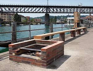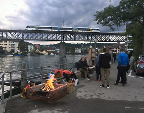 Neben dem Güterhof wirft eine ältere Frau gezielt eine Pétanque-Kugel über den Sandplatz. Weiter vorne beim Kanu-Club grillieren ein paar Leute Vegiburger auf einem Grill direkt oberhalb des Wassers und hören Musik. Nein, hier hat nicht etwa die Stadt vorwärts gemacht in Sachen Rheinuferaufwertung. Vielmehr sind diese Interaktionstreffpunkte temporärer Natur, es sind Markus Weiss’ Stadtmöbel. Oder sein Stadtmobiliar. Die Benennung steht für Weiss noch nicht fest.