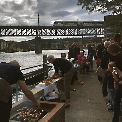 Neben dem Güterhof wirft eine ältere Frau gezielt eine Pétanque-Kugel über den Sandplatz. Weiter vorne beim Kanu-Club grillieren ein paar Leute Vegiburger auf einem Grill direkt oberhalb des Wassers und hören Musik. Nein, hier hat nicht etwa die Stadt vorwärts gemacht in Sachen Rheinuferaufwertung. Vielmehr sind diese Interaktionstreffpunkte temporärer Natur, es sind Markus Weiss’ Stadtmöbel. Oder sein Stadtmobiliar. Die Benennung steht für Weiss noch nicht fest.