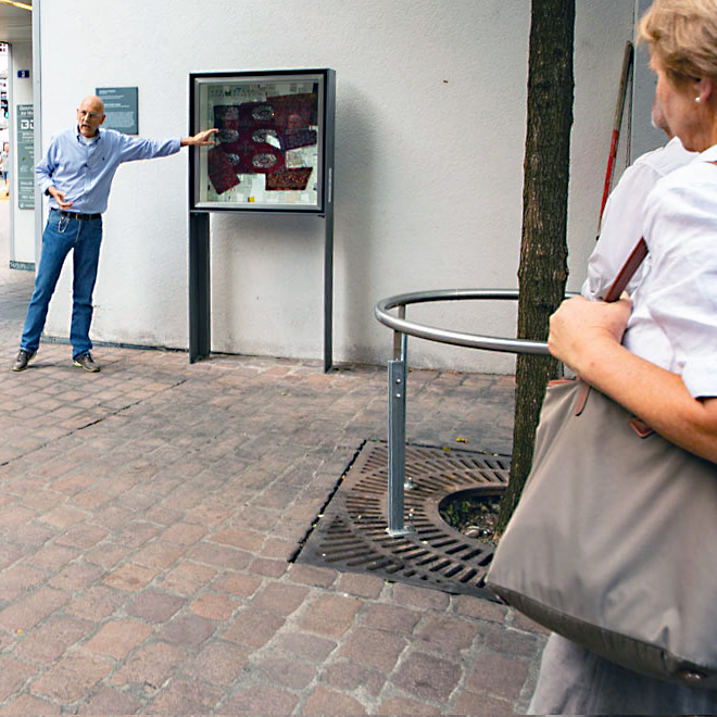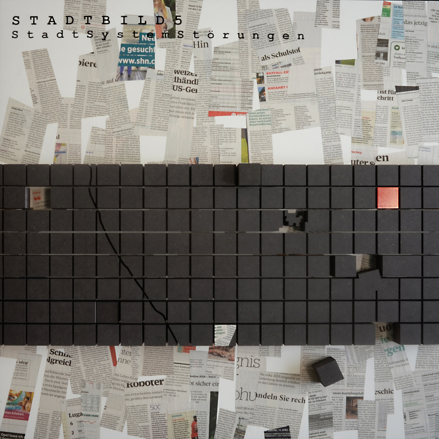 Eine gleichmässige Reihe schwarzer Würfel wird in Bild Nummer 5 gestört von verschiedenen Elementen wie einem roten Würfel etwa oder einer Bruchlinie. Hier unterstreicht Kick nochmals, dass Perfektion in einer Stadt weder möglich noch erstrebenswert ist. Denn Neues und Spannendes entsteht erst dort, wo sich eine Störung befindet. Schwache, dreckige Stellen, das Unerwartete und Lebendige. Als bekannte Störung nennt Kick den Time Square in New York, wo der Broadway, einem alten Indianerpfad folgend, mit dem rechtwinkligen Strassennetz von Manhattan kollidiert. In Schaffhausen empfindet er den Sankt Johann als Störung: Die Kirche ist zurückversetzt und deutlich grösser als die umliegenden Gebäude. Seine anderen Dimensionen reiben sich am restlichen Erscheinungsbild der Vordergasse.