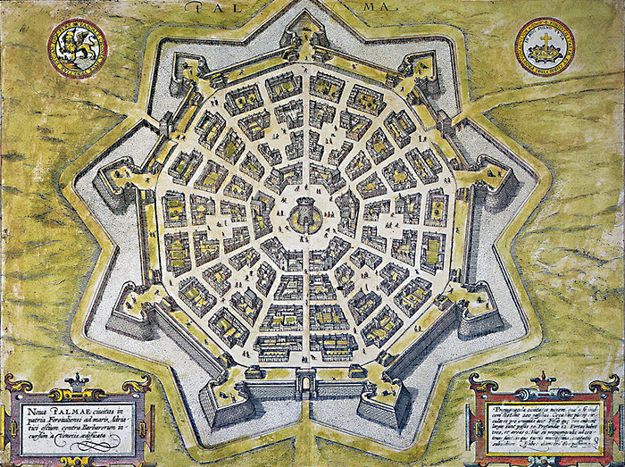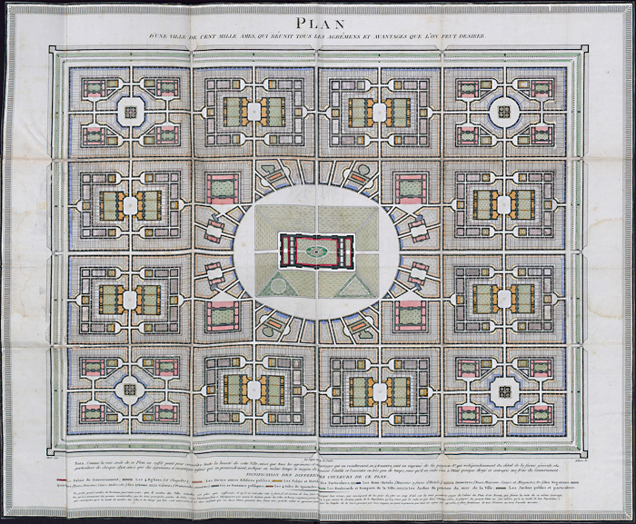 Den Teppich finden wir auch in Bild 3, hier aber plötzlich als zerschnittenes Flickwerk. Kick beschreibt, wie der im Jahre 1564 angefangene Bau des französischen Tuilerienpalastes ausserhalb der eigentlichen Stadtmauer ein nachfolgendes architektonisches Wachsen aufs umliegende Land hin auslöste. Die Stadt zerstreute sich, Grenzen weichten sich auf und Kontrolle wurde schwierig bis unmöglich – man denke da beispielsweise an Favelas, wo innerhalb von bestehenden Städten neue entstehen mit eignen Gesetzmässigkeiten.
