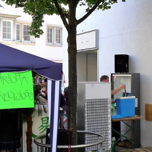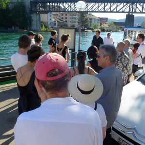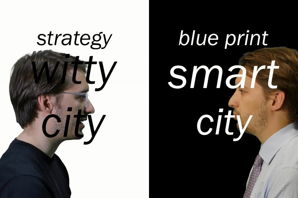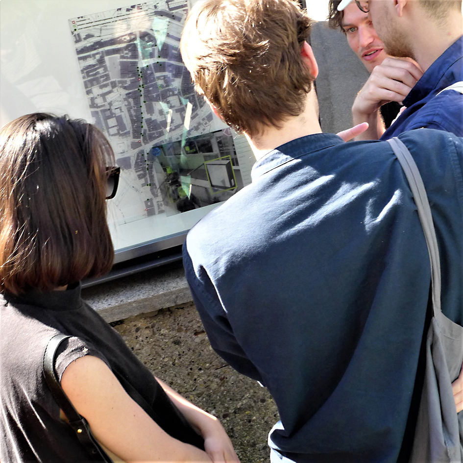 Ein weiterer Kasten thematisiert die Überwachungskameras in der Altstadt. Kuny und Wäckerlin: So wie Leute von Kameras überwacht werden, werden auch Orte überwacht, indem sie tausendfach auf privaten Touristenbildern existieren und auf irgendeiner Plattform gepostet werden. Sie werden sozusagen von einer lokalen auf eine globale Ebene gehievt und das verändert einen Ort. Technologiefirmen wie google haben etwas entwickelt, was extrem mächtig ist. Millionen von Usern liefern mit der Nutzung von Applikationen Daten, die zur Währung der Macht werden. So plant google in Toronto den Bau eines perfekt vernetzten Stadtteils; vielleicht nicht, indem es Kranen auffährt, aber indem es Infrastruktur für eine „Smart City“ zur Verfügung stellt. Etwa für ein Verkehrssystem, das die Daten von Smartphones, Sensoren und Kameras nutzt, um die besten Verkehrsrouten zu bestimmen – nie wieder Stau, keine Warterei und weniger Verkehrstote, aber auch keine Störungen, zufälligen Begegnungen und Demonstrationen mehr.
